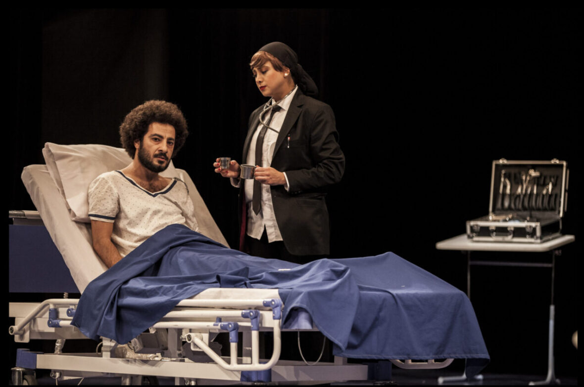 Rooted in movement design, the performance shifted from a panoramic to a panoptic space. The hospital set, stripped of doors and walls, allowed characters to move freely, highlighting the tension between freedom and control. The patient’s stillness contrasted with surrounding movement, raising the question: “How can stillness become an act of resistance under constant observation?” Ken Harrison’s immobility asserted his bodily autonomy, while active characters, paradoxically, appeared constrained by their own actions.